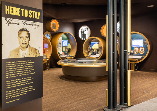 Explore the life, sound, and spirit of Louis Armstrong through Here to Stay, our immersive exhibition at the Louis Armstrong Center.